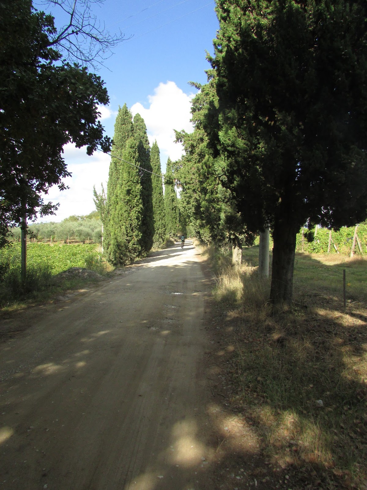 Le strade dei dintorni sono perfette per provare tubolari, vibrazioni, e solidità delle bici, percorriamo anche un tratto di strada che rifaremo domani! C'è una bella strada piena di saliscendi e di sterrati che passa da Pievasciata e dal Parco Sculture del Chianti, e poi arriviamo a Ponte a Bozzone e ai piedi di Siena vicino alla stazione...